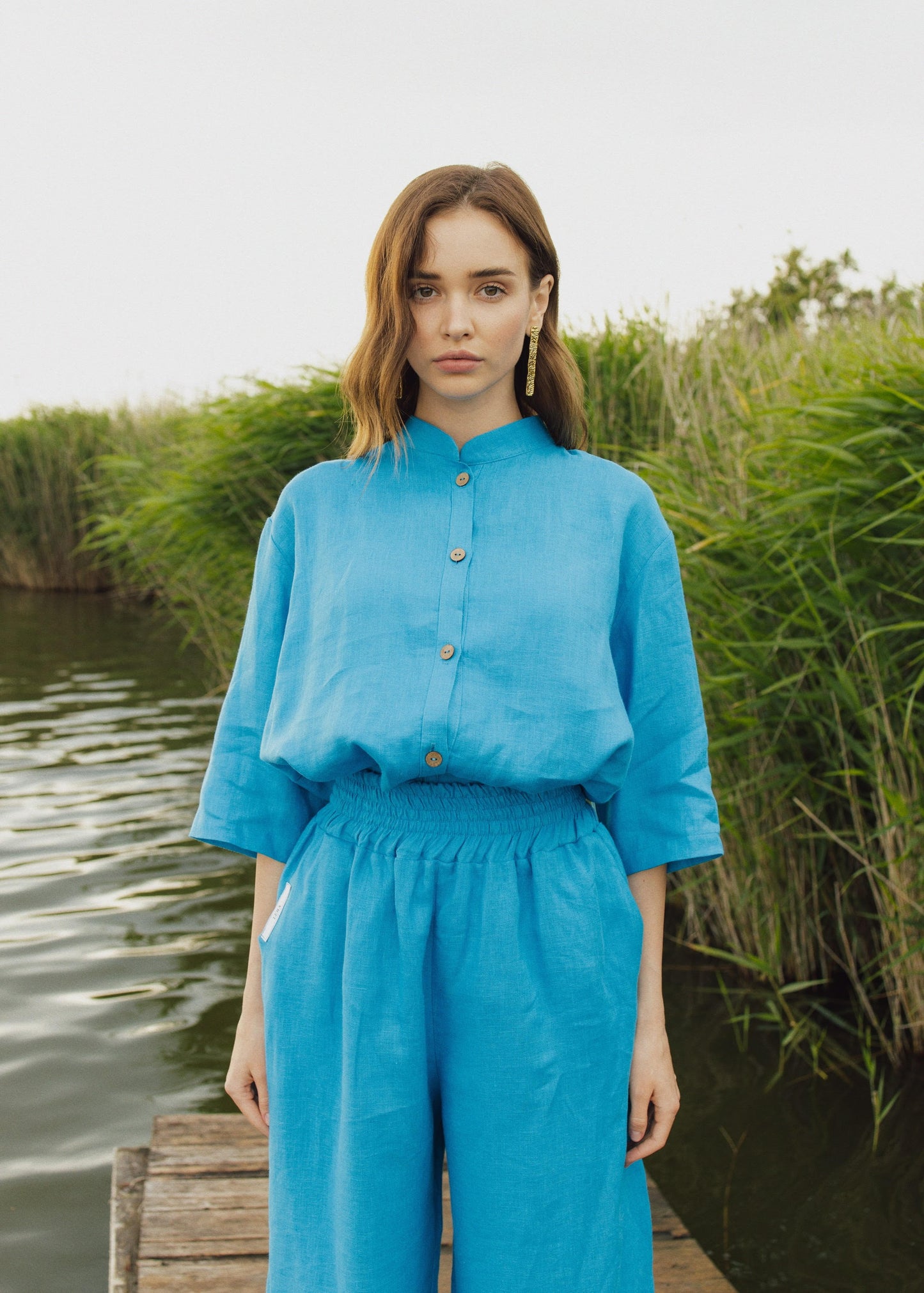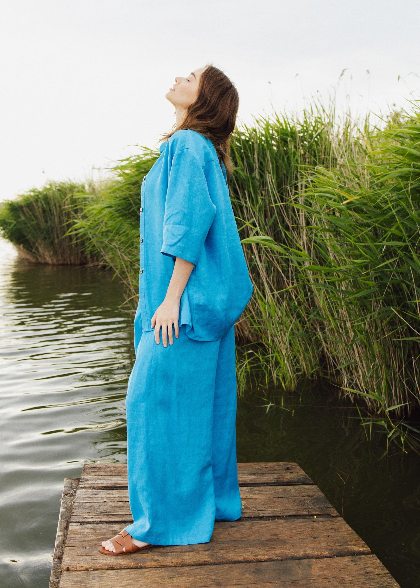 We use high quality soft washed linen which doesn’t wrinkle as easily as regular linen. Our pajamas are all-day wear, you can easily go out to the beach or even spend a day with your friends in it, you will always look fabulous and stylish in it.
